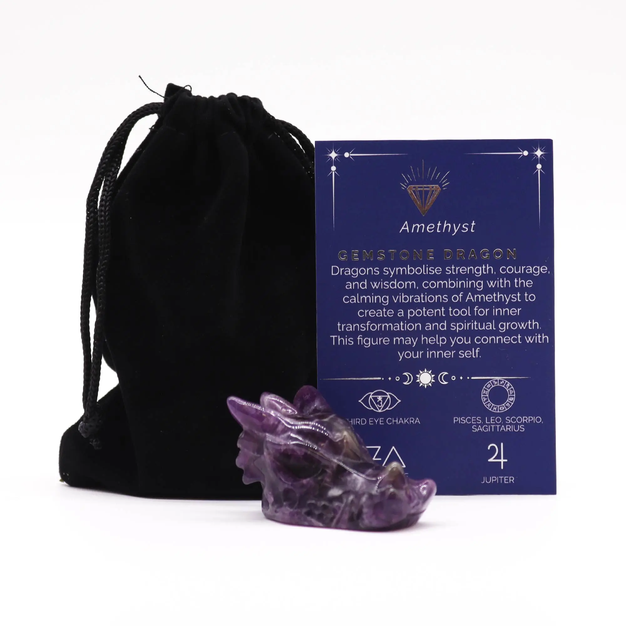 Elevate your energy with this Small Dragon Head carved from natural Amethyst, a stone renowned for its calming and spiritual properties. This finely detailed piece merges the wisdom of the dragon with Amethyst’s high-vibrational energy, making it perfect for meditation, protection, and enhancing inner peace.